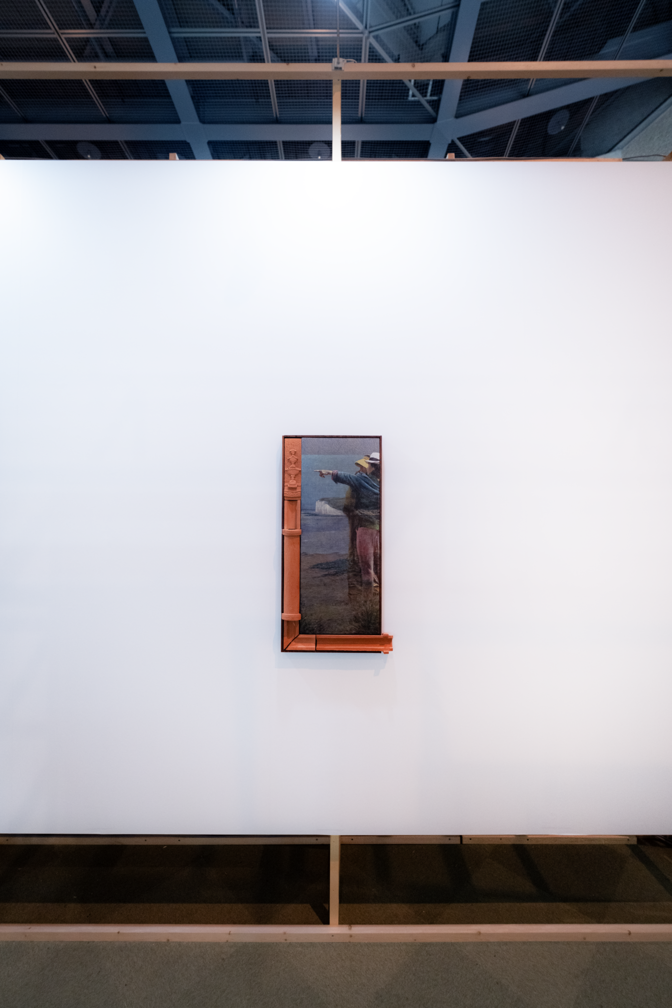 Sam Creasey (b. 1993) is a British artist originally from Maidstone and now working in London. He received his MA in Painting from Royal College of Art in 2020. His paintings explore the synthesis distinctly British populaces have with their built surroundings and their contributing socio-political inclinations. The art of Sam Creasey emerges as a profound exploration of the intricate relationship between human emotion and the surrounding architecture, infrastructure, and socio-political systems. Through a distinctive blend of painting and ceramics, Creasey delves into the enigmatic realms of construction, gentrification, alienation, and British politics, weaving distinct narratives that are at once jaded and surreal.