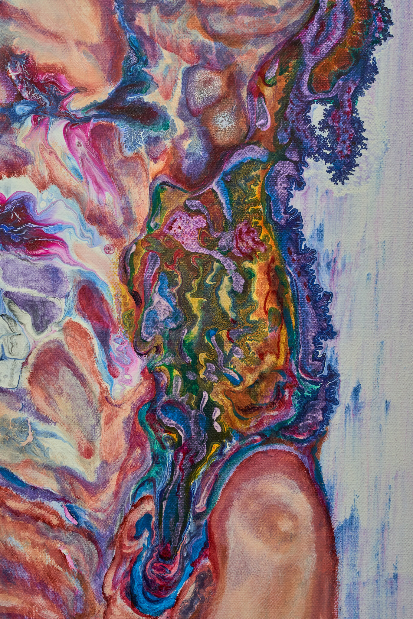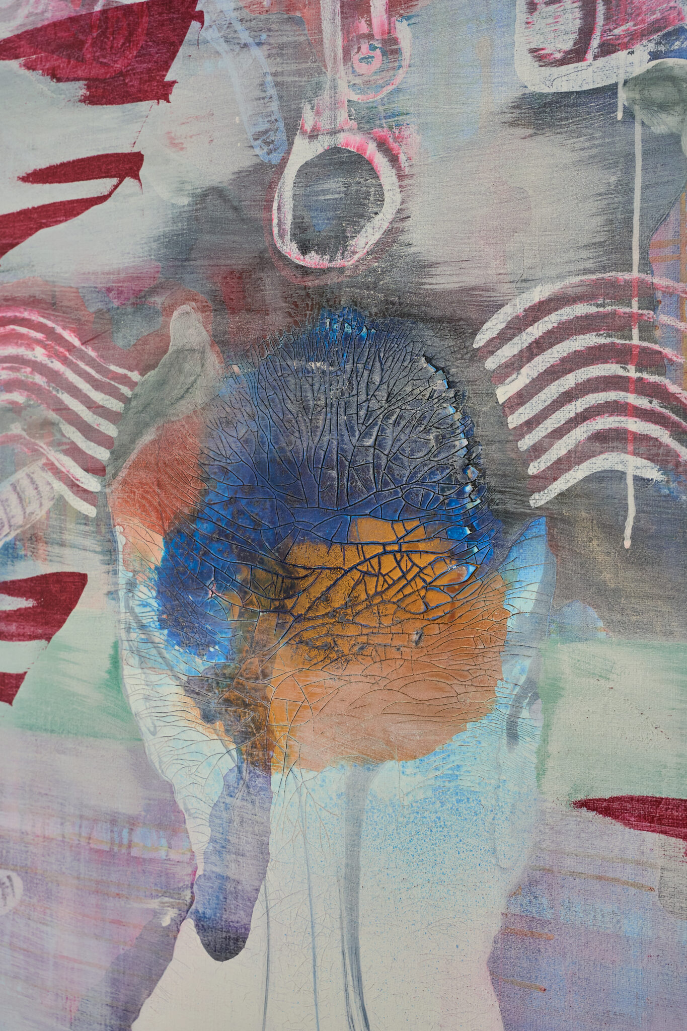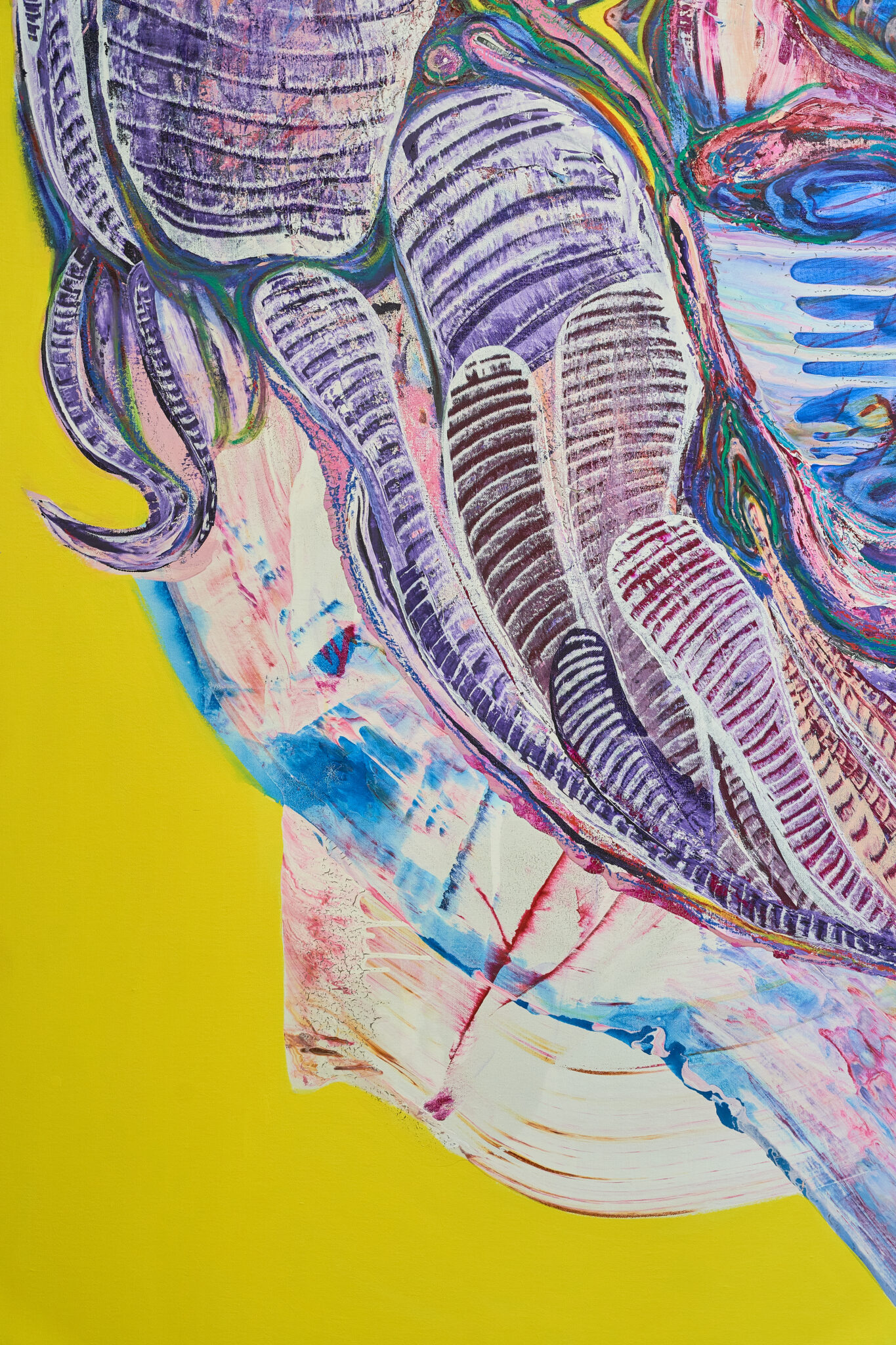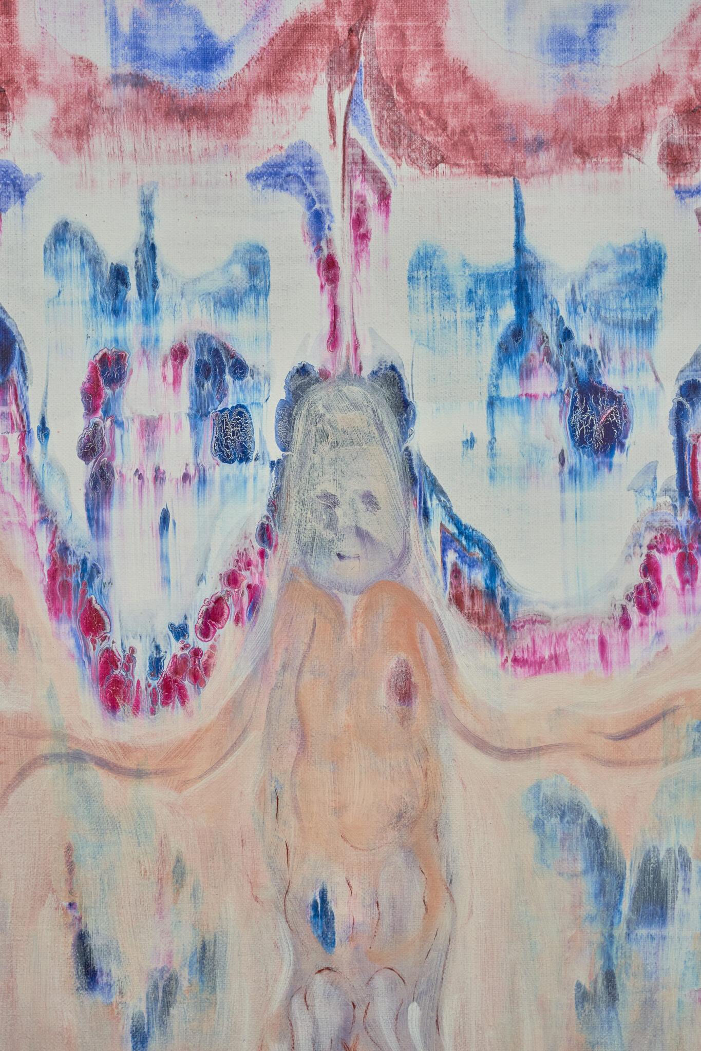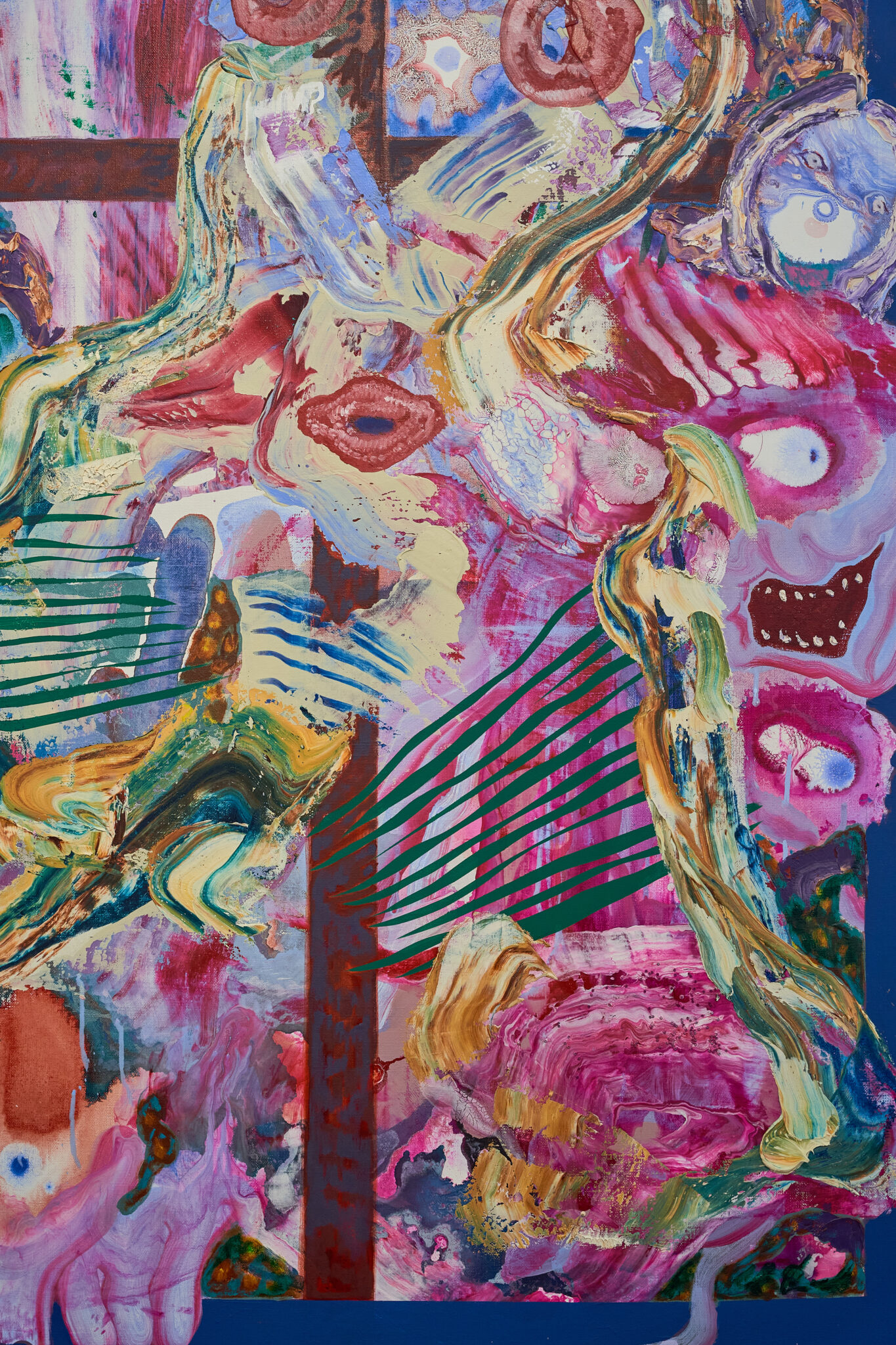 Zhang Ji (b.1993, Beijing) graduated from Maryland Institute College of Art and School of the Art Institute of Chicago with a BFA and an MFA degree. In Zhang Ji’s work, there are often shifting compositions, bizarre shapes of light areas, and lines, which usually partition and compress the human body (deformed body parts, exposed organs, peculiar exposure, worship of genitalia, and totem-like torsos). The artist prefers curved lines, diagonal or vertical, over horizontal framing. The division by brushstrokes, traces, and lines presents Zhang Ji’s version of bodies or his whole world of painting as restless and unstable. Additionally, Zhang Ji has his metaphysical understanding of the body, and most viewers find it hard to expound on his highly personal style. We can only summarize that the body is a public medium of sociality, and the package of modern civilization has shadowed the social properties of its structure. Thanks to the magic of painting, we can unravel everything and make public every unspeakable secret about the body.