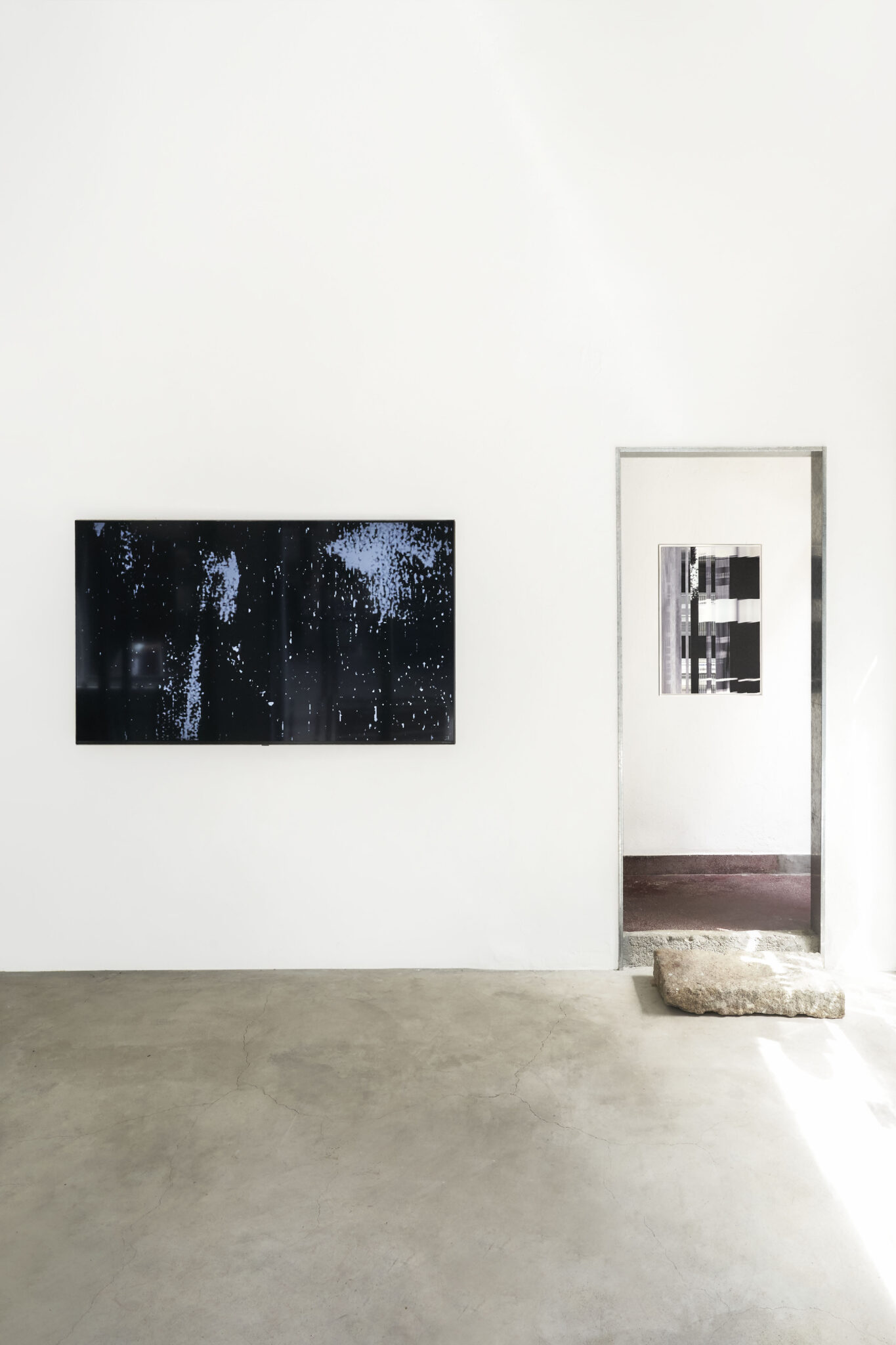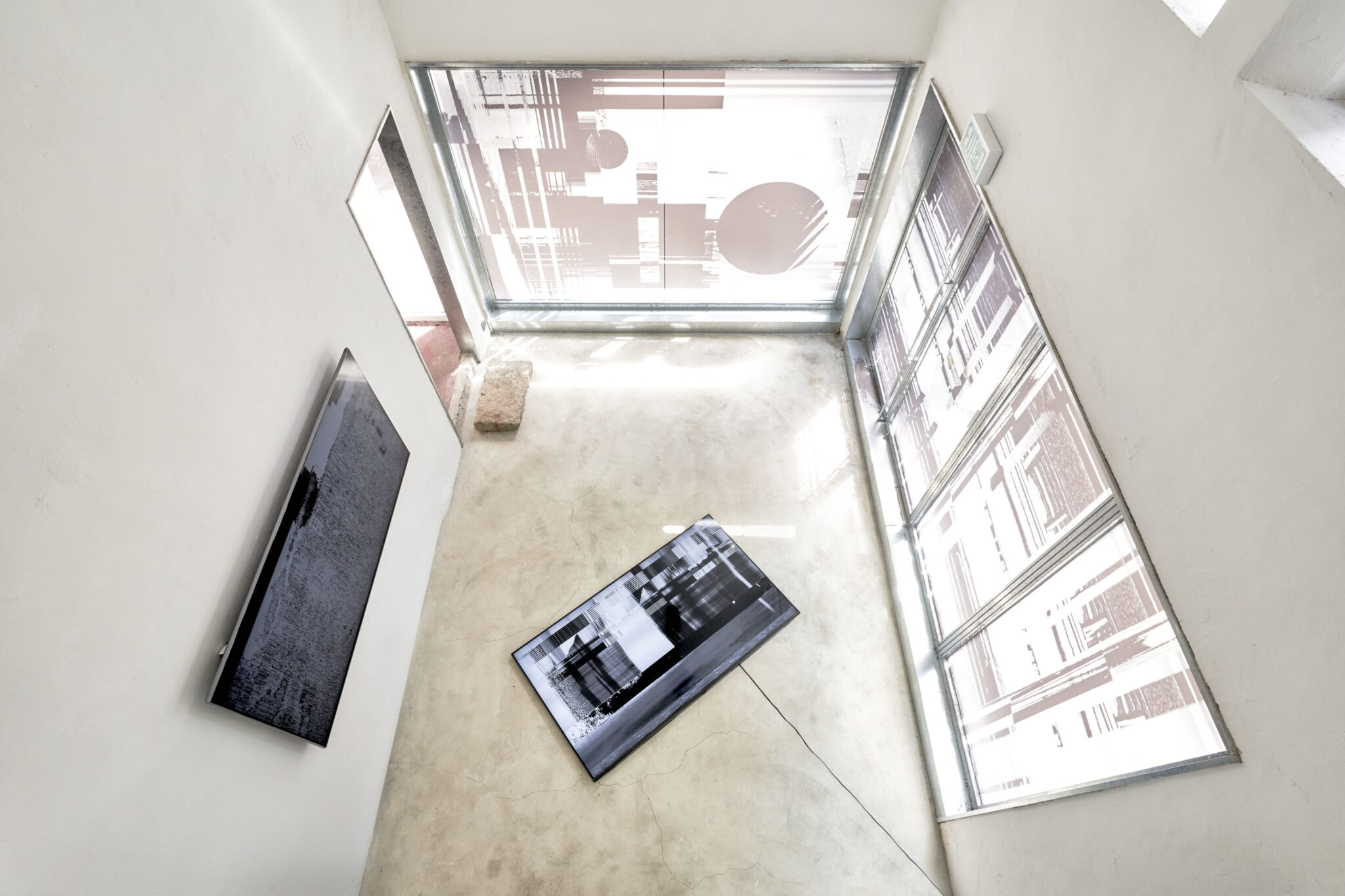 The ground floor space showcases print and video works by Yoshirotten. By erasing the existence of landscape, Yoshirotten reconstructs and collages them using only the graphic motifs that appear by picking up the resolution, unveiling the primordial fragment of the city.