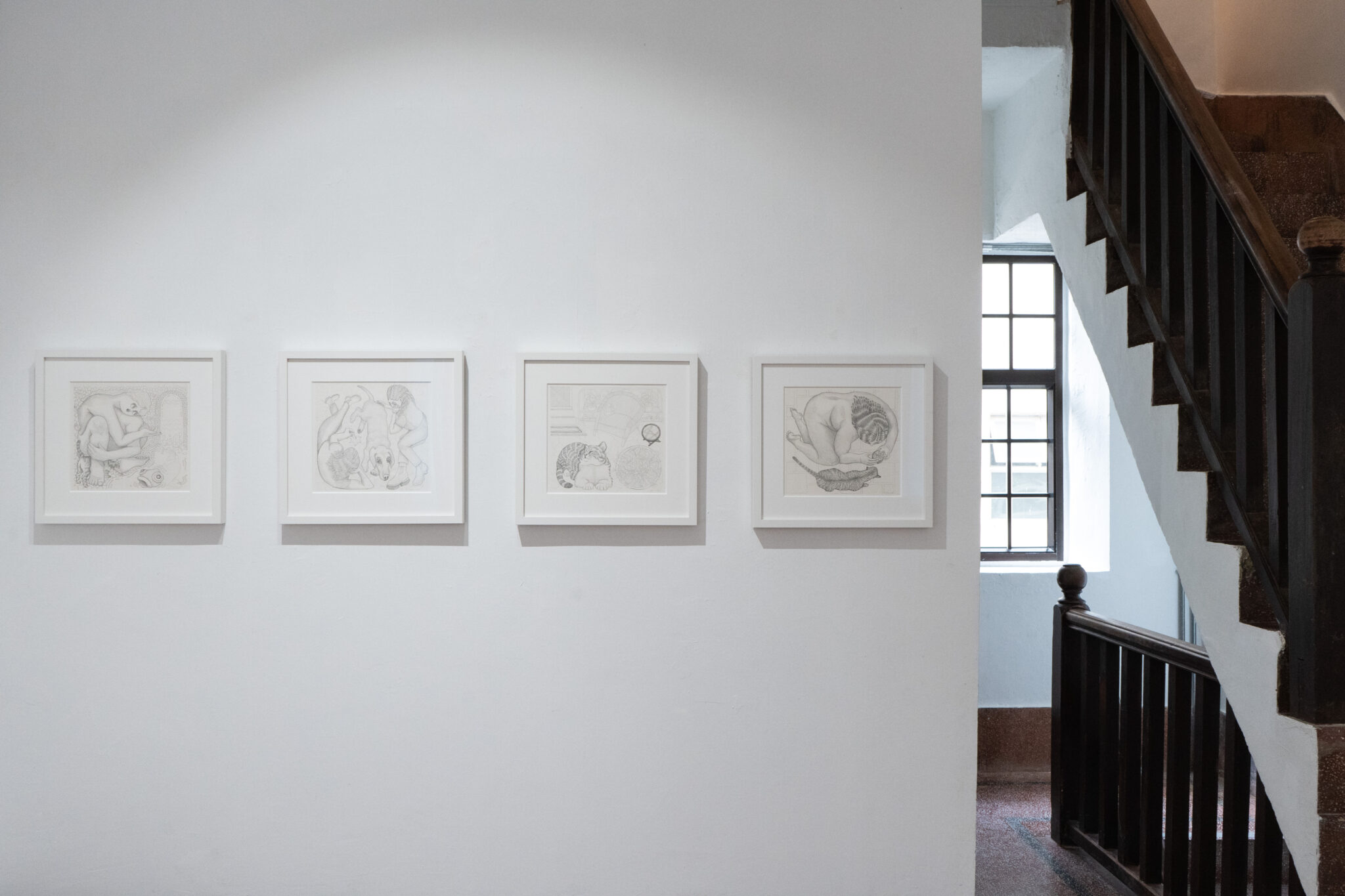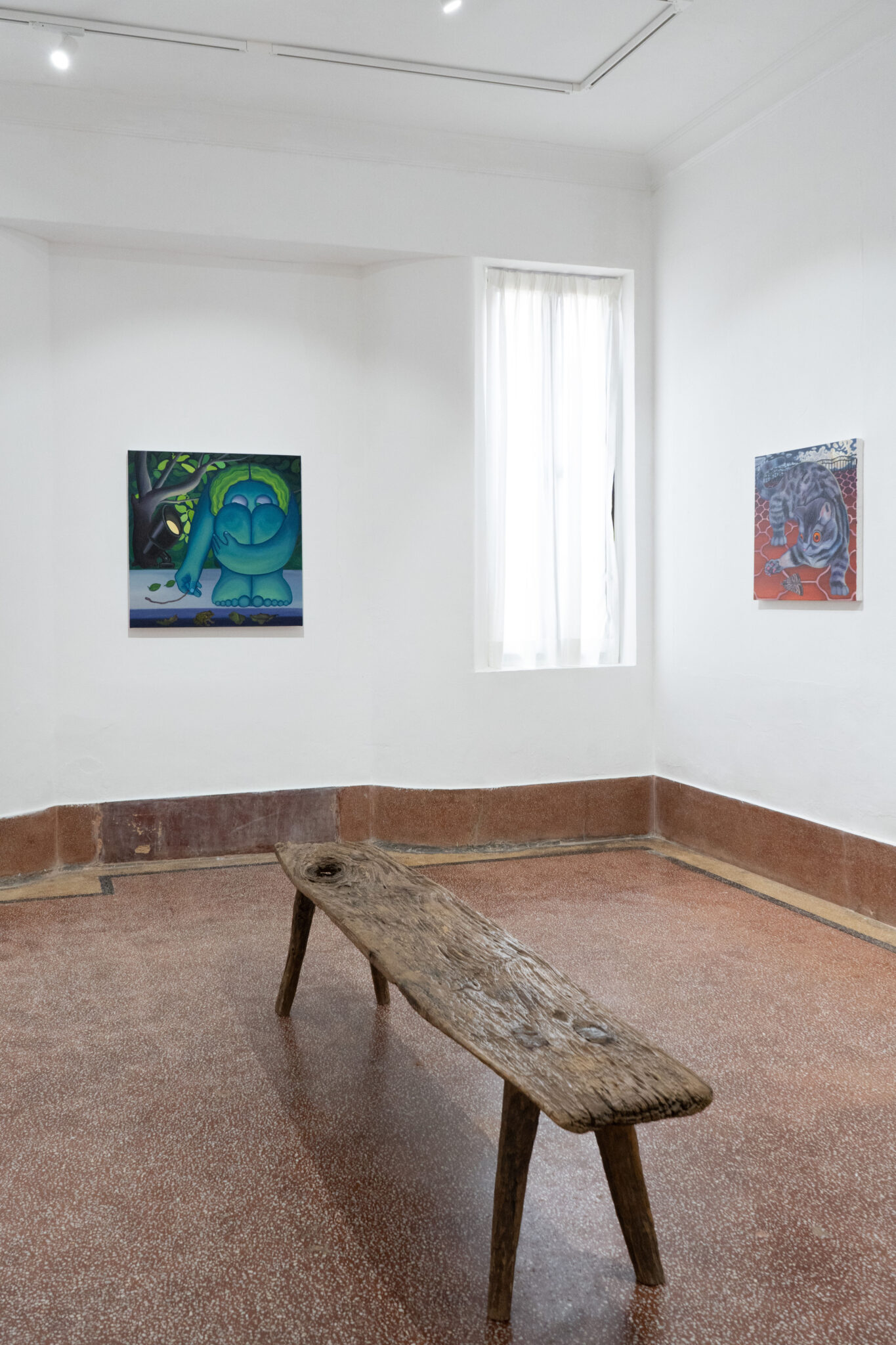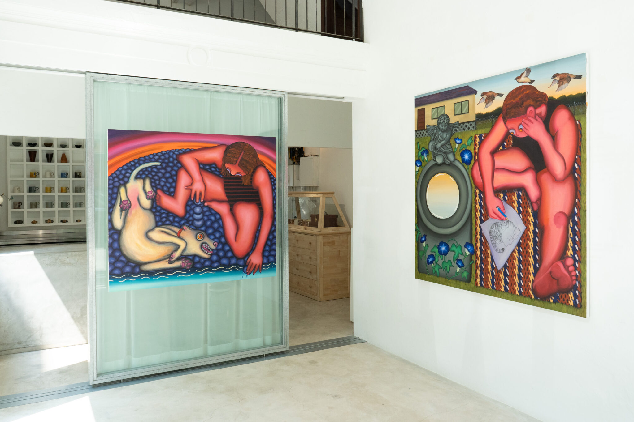 THE SHOPHOUSE is pleased to present a new exhibition with New York-based artist Natalie Wadlington (b. 1992, Modesto, CA). In her paintings, Wadlington seeks to imbue each work with a strong and distinct mood—one of pensiveness, wonderment and uncertainty. This essence reflects the possibilities for both connection and misunderstanding that occur at the boundary between oneself and others, specifically in relation to domesticated animals and outdoor spaces. Presented in the exhibition is a series of eight paintings alongside a selection of works on paper that explore archetypal narratives of love, conflict and misjudgment in relationship to our natural environments and their inhabitants.