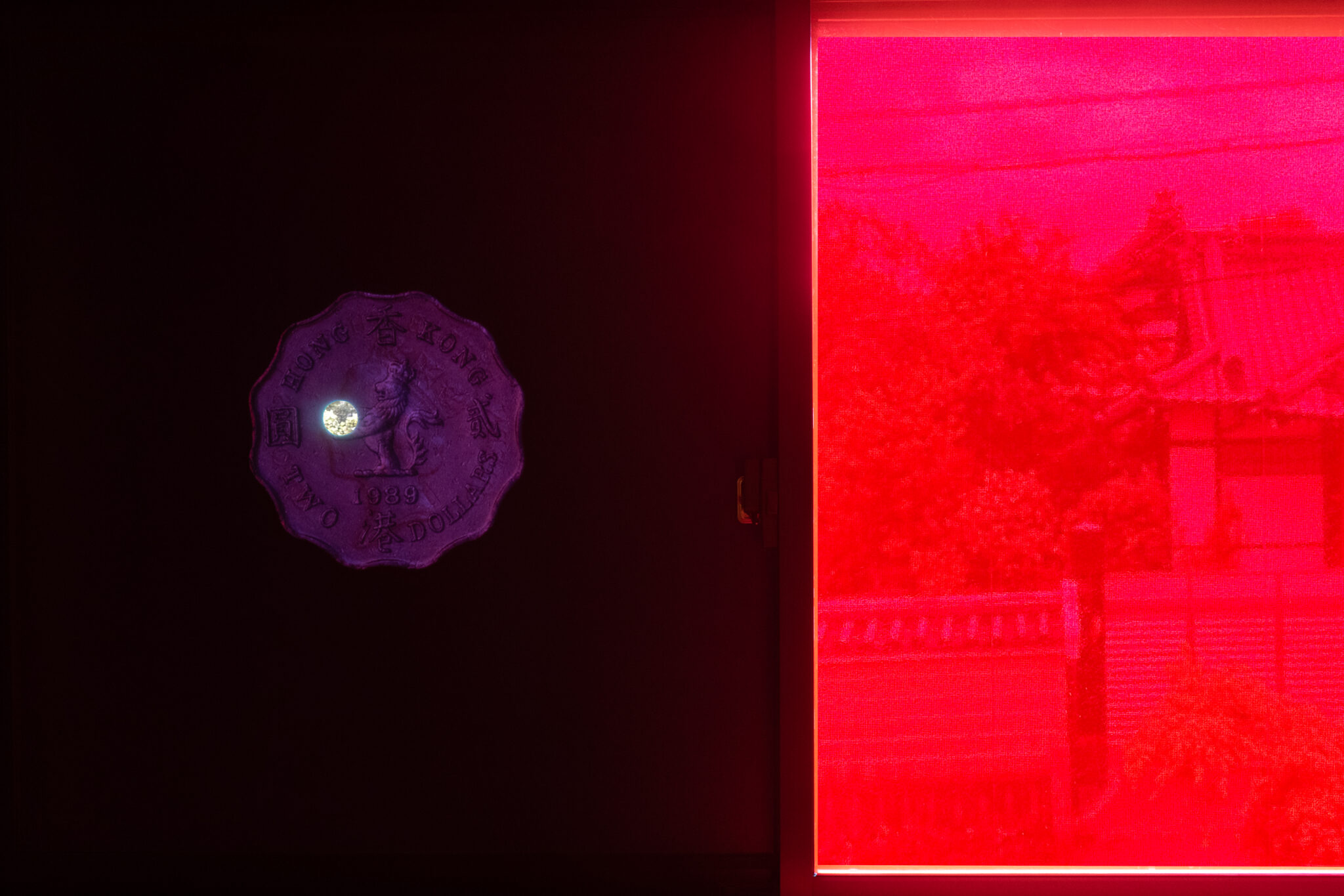 We wrapped a disused booth in a reflective cover and added a coin from the colonial era with a hole drilled in it, turning the booth into a pinhole darkroom. Through the inverted images inside the booth, the viewer shuttles back and forth between different landmarks before and after the handover, tracing the endlessly shifting political relationship between ‘deconstruct’ and ‘construction’ in the city.