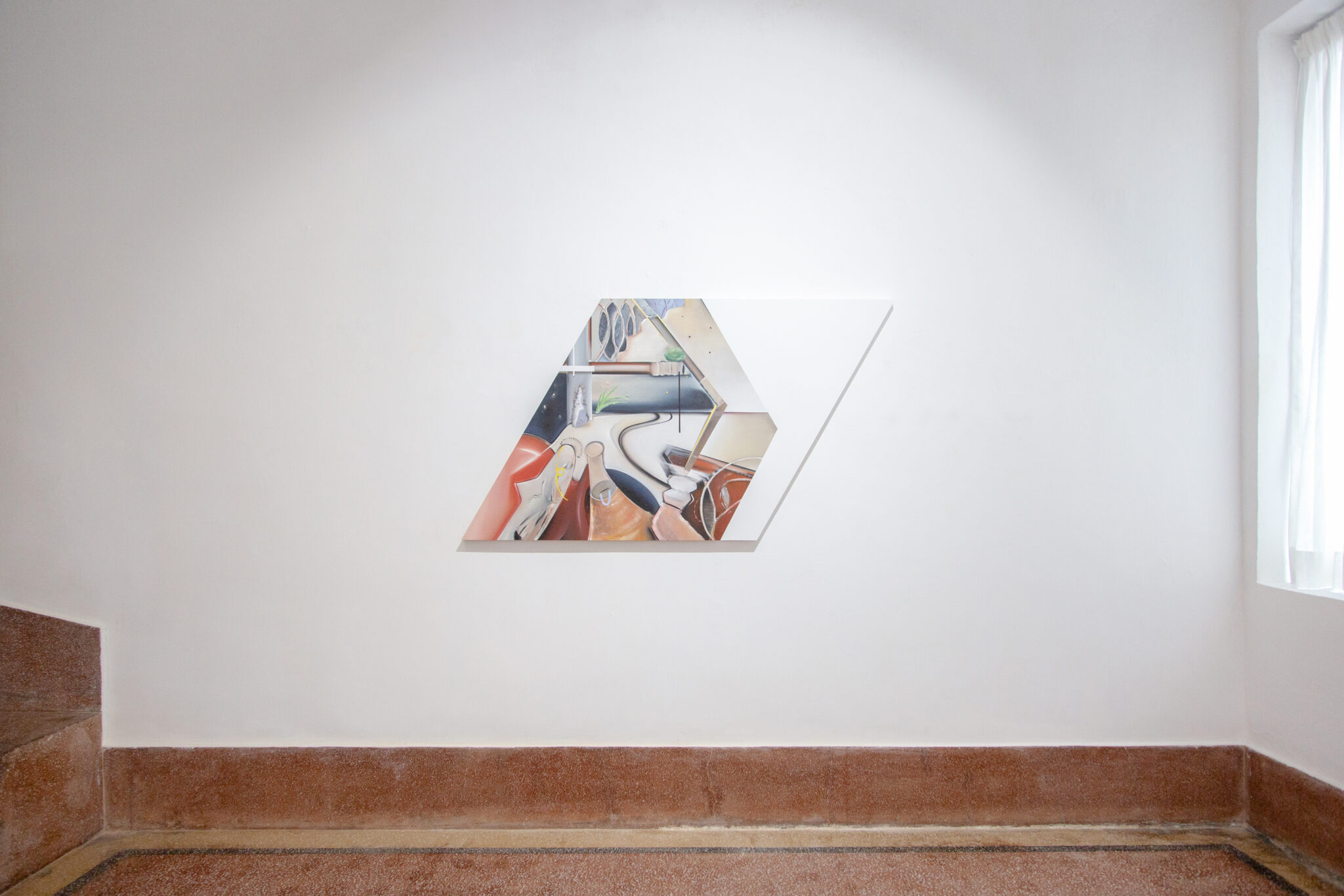 Vertex signifies a point of convergence——where separate trajectories meet to form new perceptual ground. Samejima’s painting begins with an inquiry into the mechanisms of perception and the conditions under which the world appears. Grounded in the understanding that we do not perceive reality directly but construct subjective worlds by supplementing fragmentary sensory information, she approaches painting as a generative field in which seeing and appearing intersect. On canvas, she assembles fragmentary forms—from perceptual impressions to historical traces—allowing prediction and sensation to collide, interweave, and coalesce.