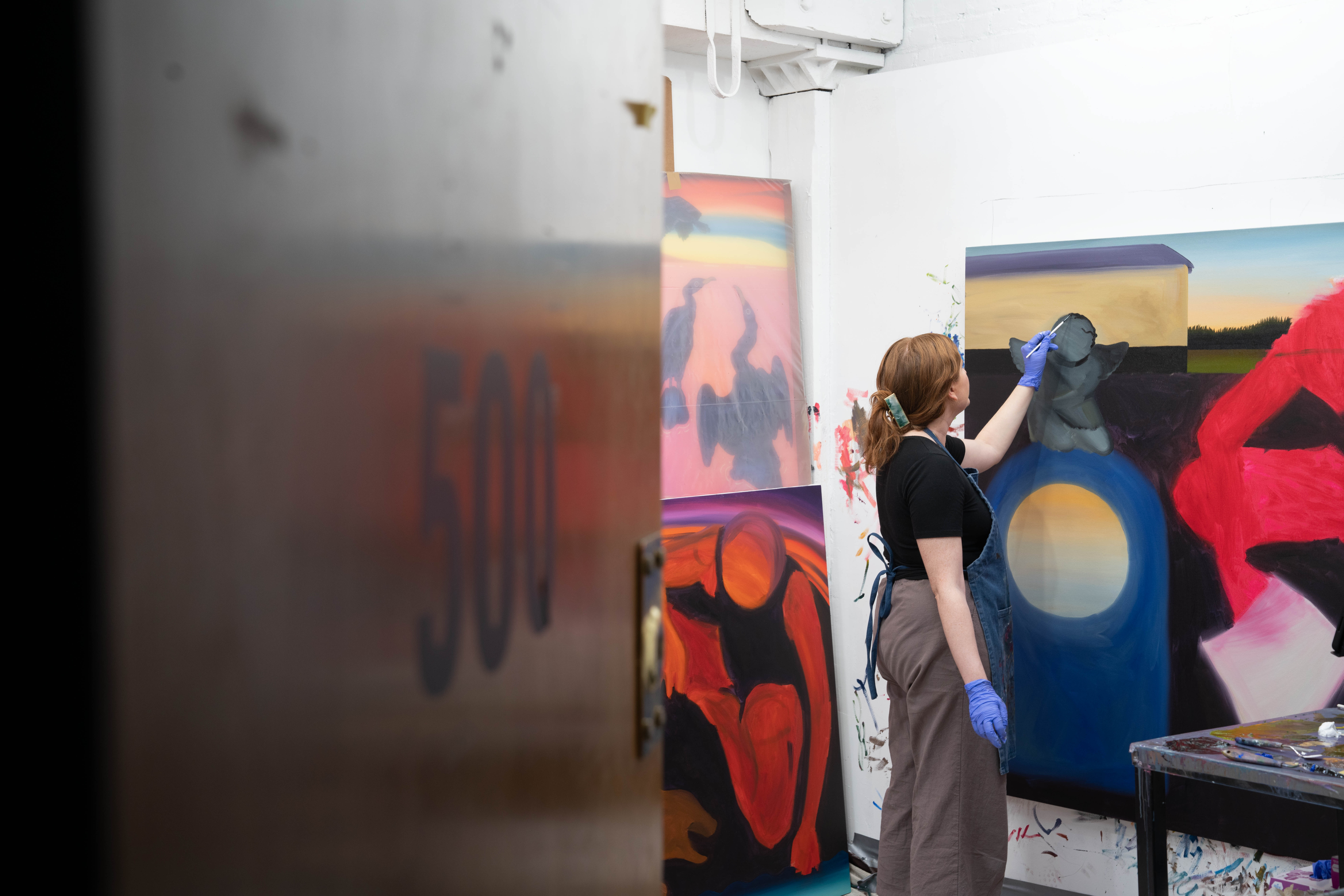 For me, it’s important that the subjects and images in the painting are roughly life-sized. That’s informed by my relationship to the surface of the canvas. I think of the act of painting as creating something two-dimensional on a flat surface. So the building up of paint is a bit like building something into form. When I’m creating something on the surface of a painting, I’m imagining placing it on the surface. Materially, it makes sense for me to feel like there’s a one-to one scale going on there.